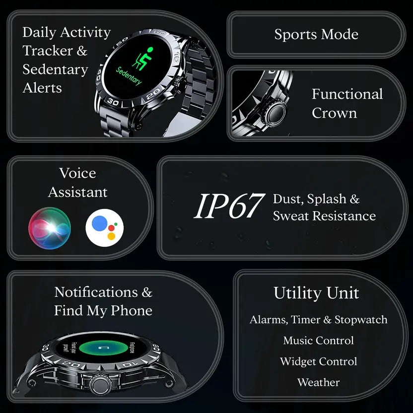 - Health & Wellness: HR, SpO2, Sleep Monitor & Guided Breathing