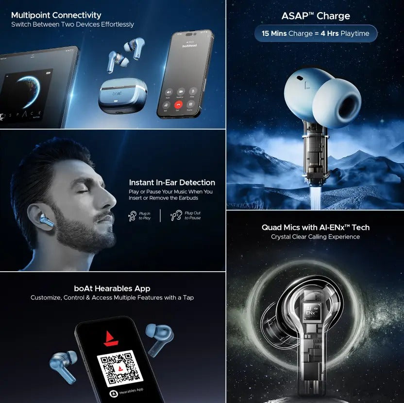 - App Support: Get all the functions for upgrading your listening experience with Nirvana Space on the boAt Hearables app.